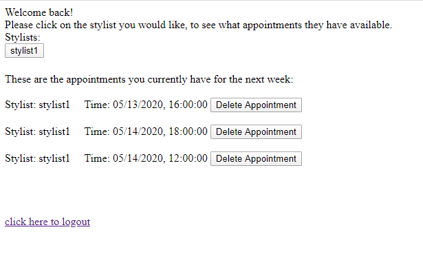 You can create an account on the site, manage appointments, and view stylists, with different permissions based on what user type you are.